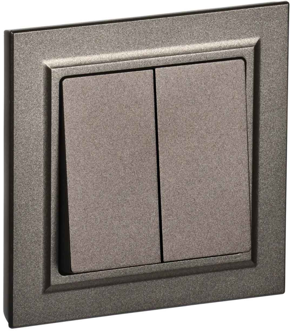Выключатель с рамкой BRITE, двухклавишный, без подсветки, цвет - темная бронза