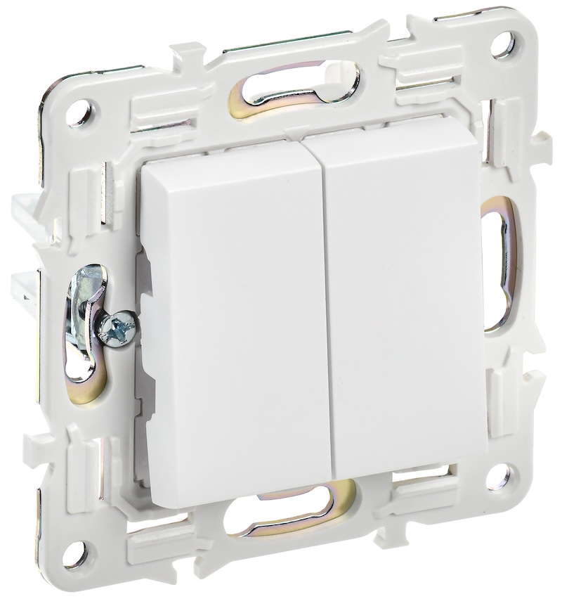 Переключатель Skandy, двухклавишный, без подсветки, цвет - белый