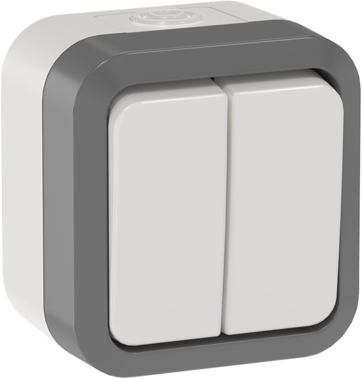 Выключатель TORS, двухклавишный, без подсветки, цвет - серо-белый