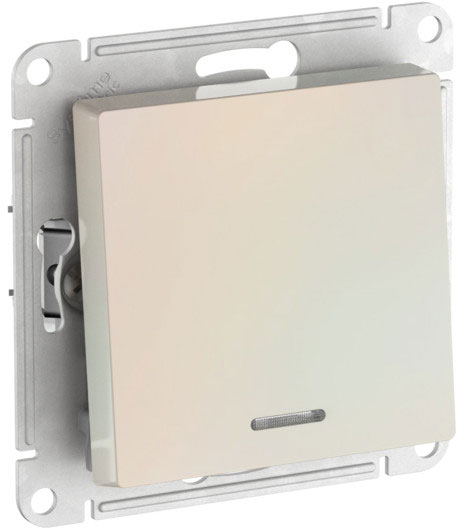 Выключатель (безвинтовые клеммы) Atlas Design Antique, AtlasDesign Air, Atlas Design, одноклавишный, с подсветкой, цвет - жемчуг