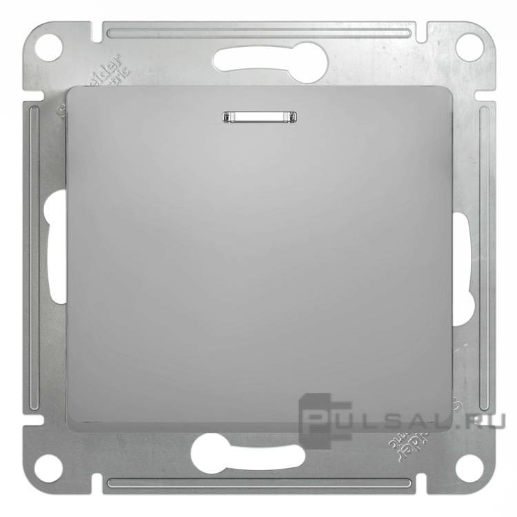 Кнопка Н.О. Glossa, одноклавишный, без подсветки, цвет - алюминий