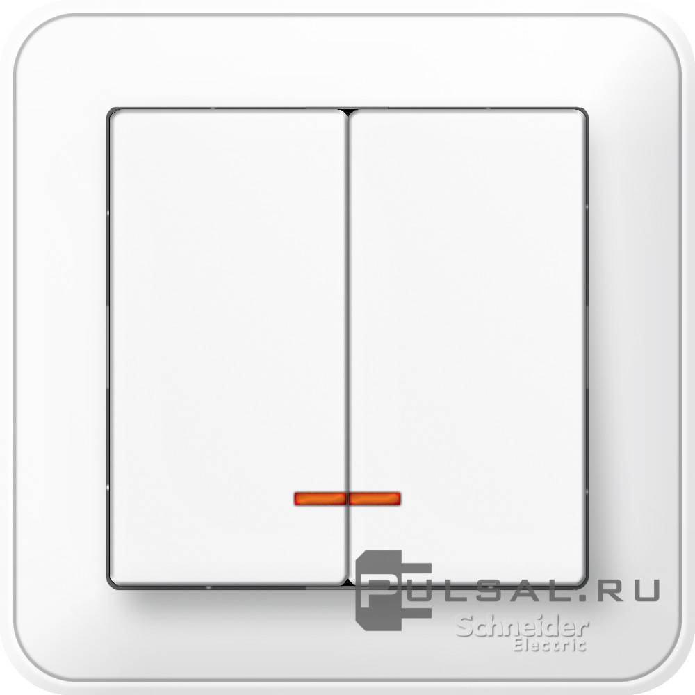 Выключатель 10 А W59, двухклавишный, с подсветкой, цвет - белый