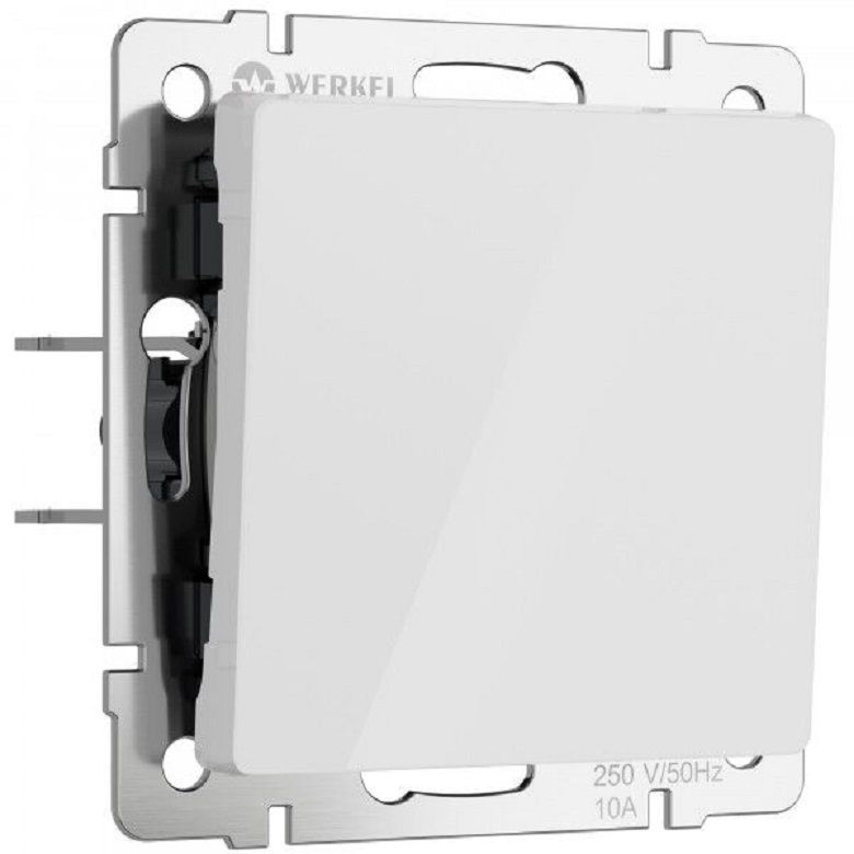 Переключатель Alumax, Split, Slab, Senso, Baguette, Acrylic, Platinum, Elite, Snabb, Stream, Flock, Stark, Fiore, Favorit, Diamant, Aluminium, Antik, Metallic, одноклавишный, без подсветки, цвет - белый акрил