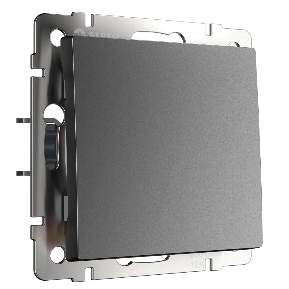 Переключатель Alumax, Split, Slab, Senso, Baguette, Acrylic, Platinum, Elite, Snabb, Stream, Flock, Stark, Fiore, Favorit, Diamant, Aluminium, Antik, Metallic, одноклавишный, без подсветки, цвет - графит матовый
