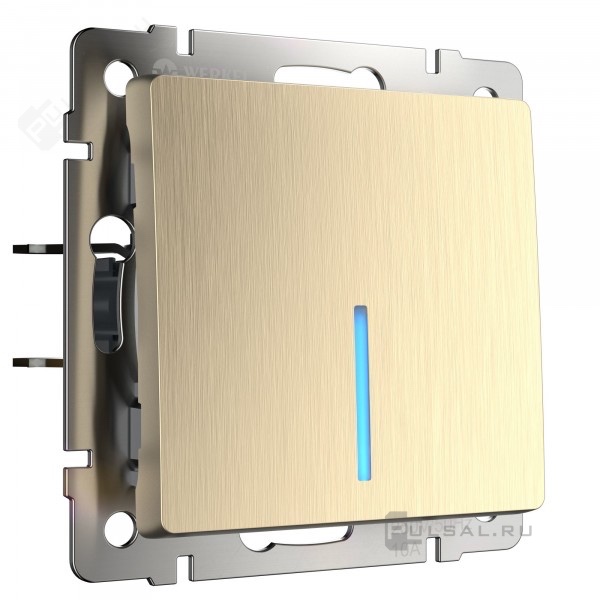 Переключатель Alumax, Split, Slab, Senso, Baguette, Acrylic, Platinum, Elite, Snabb, Stream, Flock, Stark, Fiore, Favorit, Diamant, Aluminium, Antik, Metallic, одноклавишный, с подсветкой, цвет - шампань рифленый