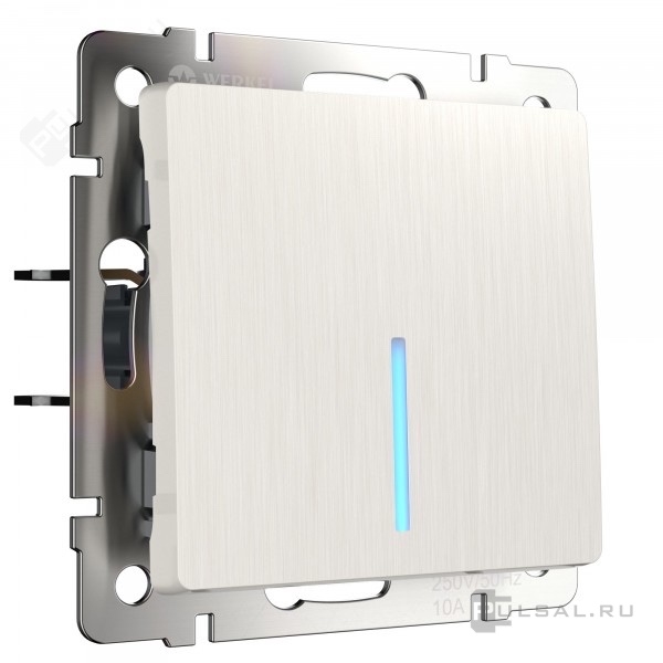 Выключатель Alumax, Split, Slab, Senso, Baguette, Acrylic, Platinum, Elite, Snabb, Stream, Flock, Stark, Fiore, Favorit, Diamant, Aluminium, Antik, Metallic, одноклавишный, с подсветкой, цвет - перламутр рифленый