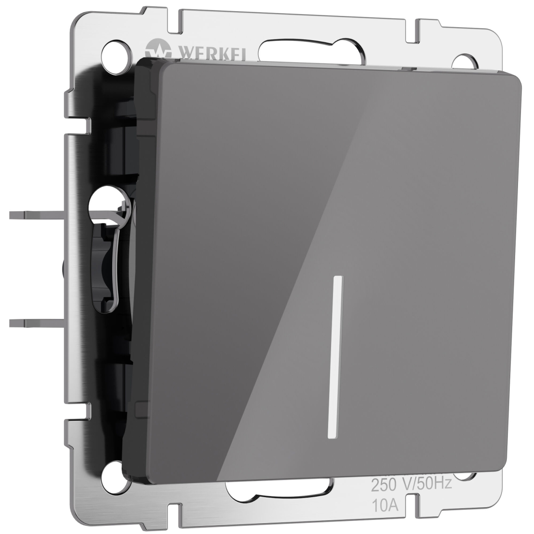 Переключатель Alumax, Split, Slab, Senso, Baguette, Acrylic, Platinum, Elite, Snabb, Stream, Flock, Stark, Fiore, Favorit, Diamant, Aluminium, Antik, Metallic, одноклавишный, с подсветкой, цвет - графит акрил