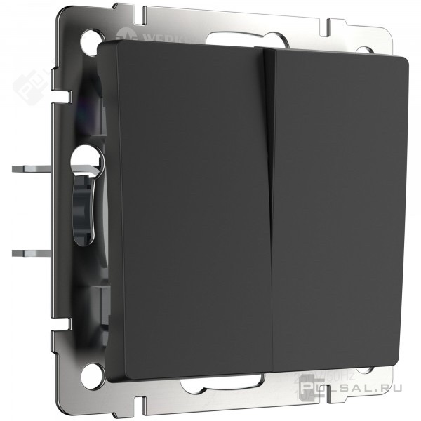 Переключатель Alumax, Split, Slab, Senso, Baguette, Acrylic, Platinum, Elite, Snabb, Stream, Flock, Stark, Fiore, Favorit, Diamant, Aluminium, Antik, Metallic, двухклавишный, без подсветки, цвет - черный