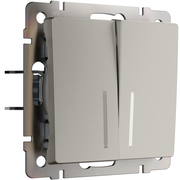 Переключатель Elite, Platinum, Acrylic, Baguette, Senso, Slab, Split, Alumax, Favorit, Aluminium, Antik, Metallic, двухклавишный, с подсветкой, цвет - дымчатый