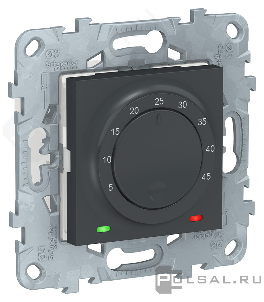 Unica New Pure, Unica New Studio, поворотно-нажимной, с возможностью управления с 2-х мест, лампы накаливания и галогенные 220В (R), лампы с индукционным (обмоточным) трансформ.(L), лампы с электронным (емкостным) трансформ.(C), диммируемые лампы LED 220В (LEDi тип L), диммируемые лампы LED 220В (LEDi тип C), цвет - антрацит