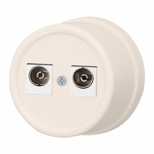 Розетка оконечная Лизетта, телевизионная (TV), двойная, цвет - песочное золото