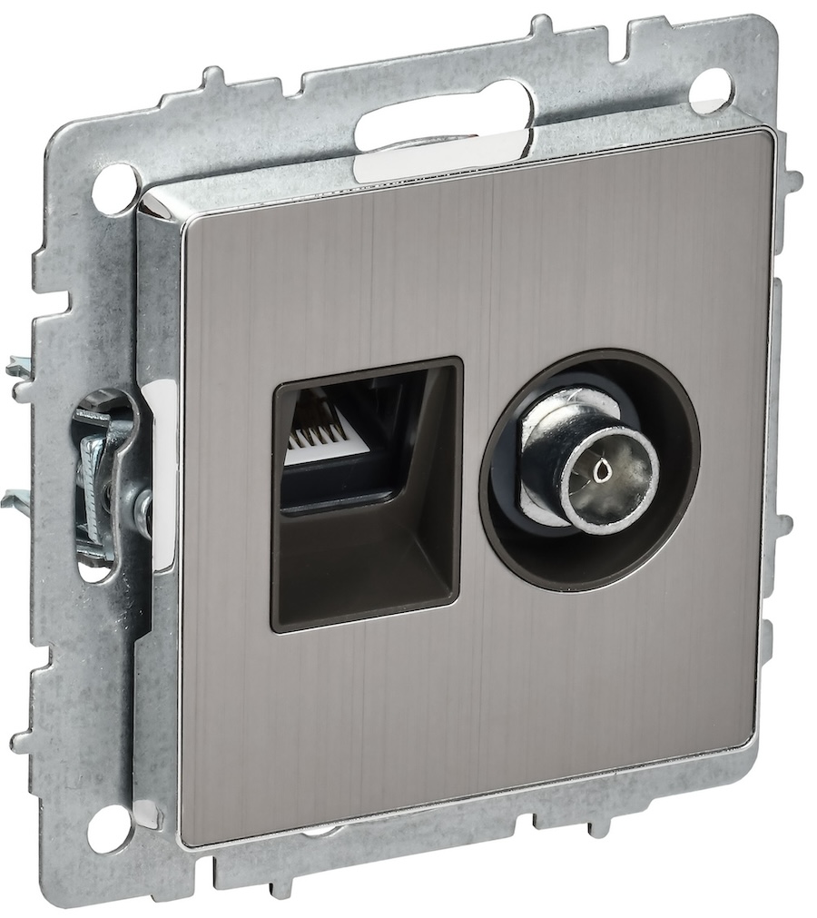 Розетка одиночная BRITE, телевизионная (TV), одинарная, цвет - никель
