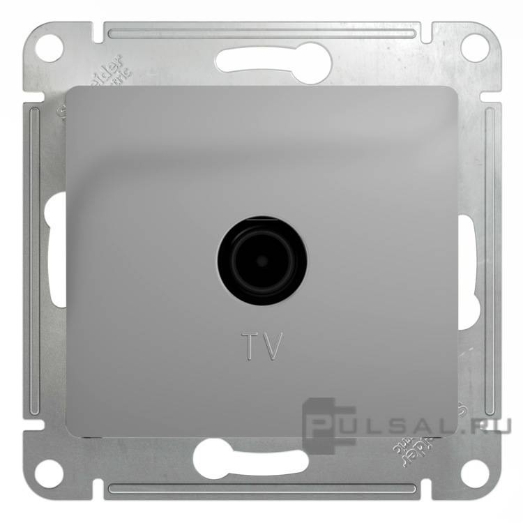 Розетка одиночная Glossa, телевизионная (TV), одинарная, цвет - алюминий