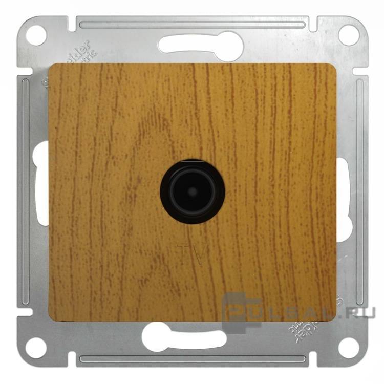 Glossa, со шторками, с заземлением, одинарная, винтовые клеммы, цвет - дуб