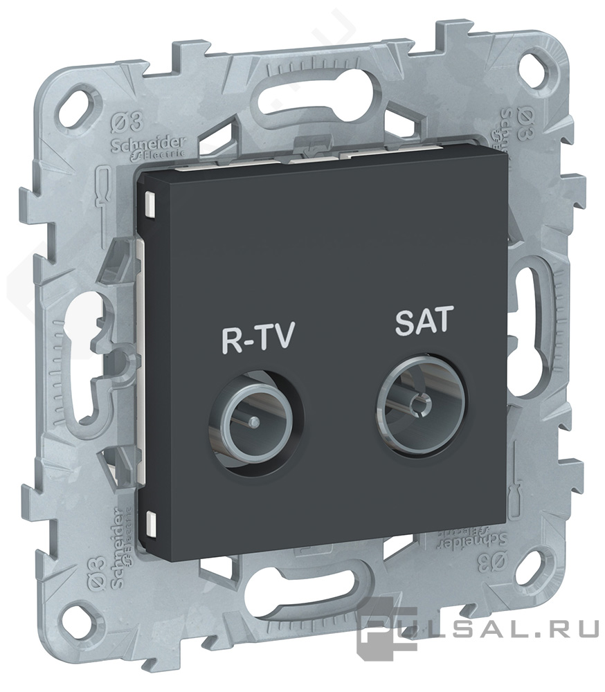 Unica New Pure, Unica New Studio, без шторок, с заземлением, одинарная, безвинтовые клеммы, цвет - антрацит