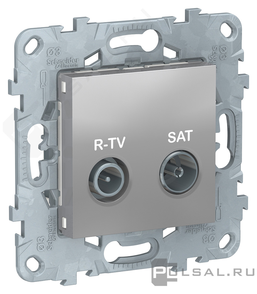 Розетка телефонная RJ11 Unica New Pure, Unica New Studio, одинарная, цвет - алюминий