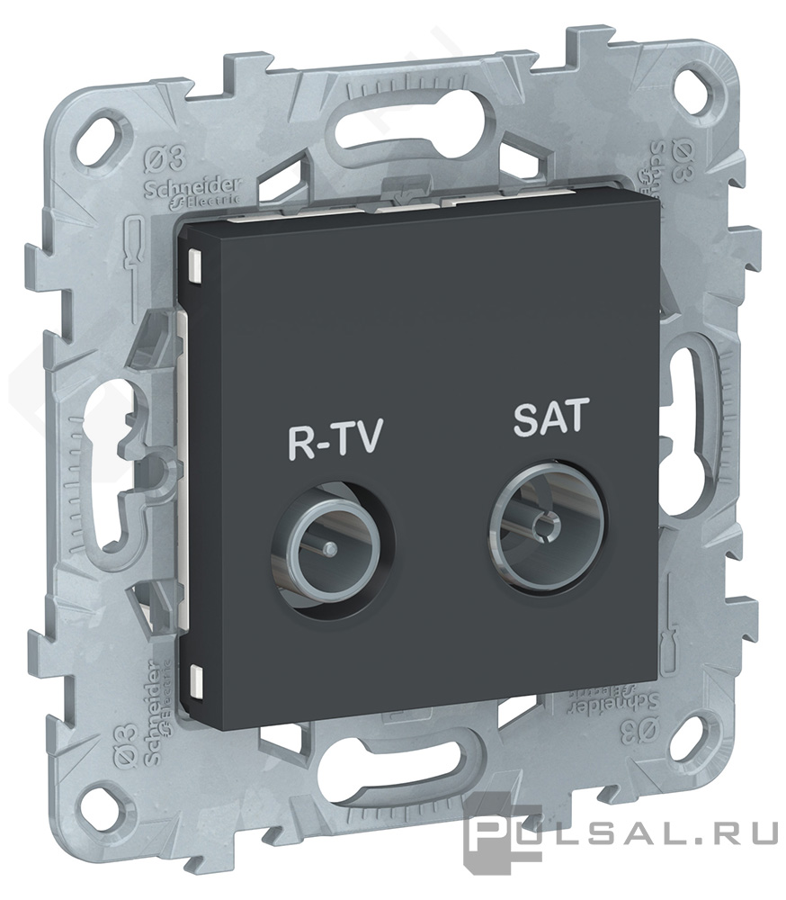 Розетка проходная Unica New Pure, Unica New Studio, телевизионная (TV), спутниковая (SAT), радио (R), двойная, цвет - антрацит