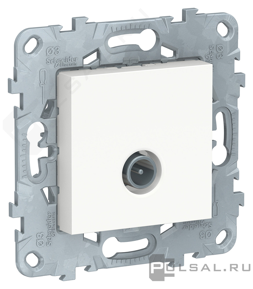 Unica New Pure, Unica New Studio, без шторок, с заземлением, одинарная, безвинтовые клеммы, цвет - белый