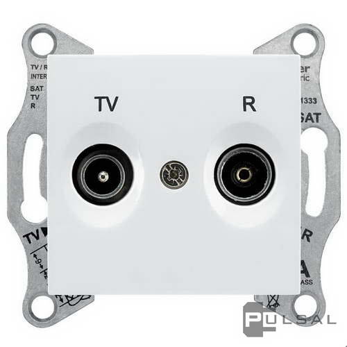 Розетка проходная 8 dB Sedna, телевизионная (TV), спутниковая (SAT), двойная, цвет - белый