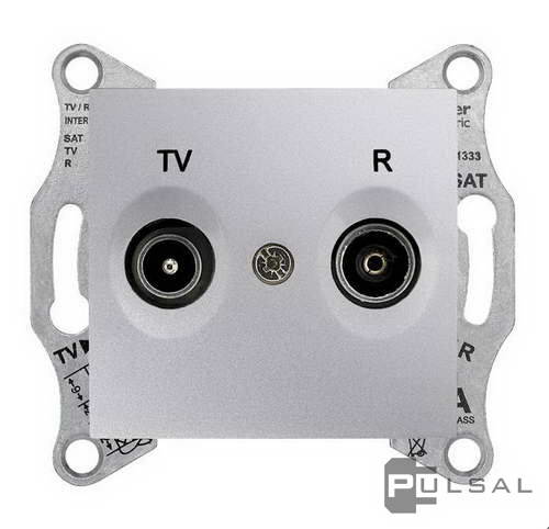 Розетка проходная 4 dB Sedna, телевизионная (TV), радио (R), двойная, цвет - алюминий