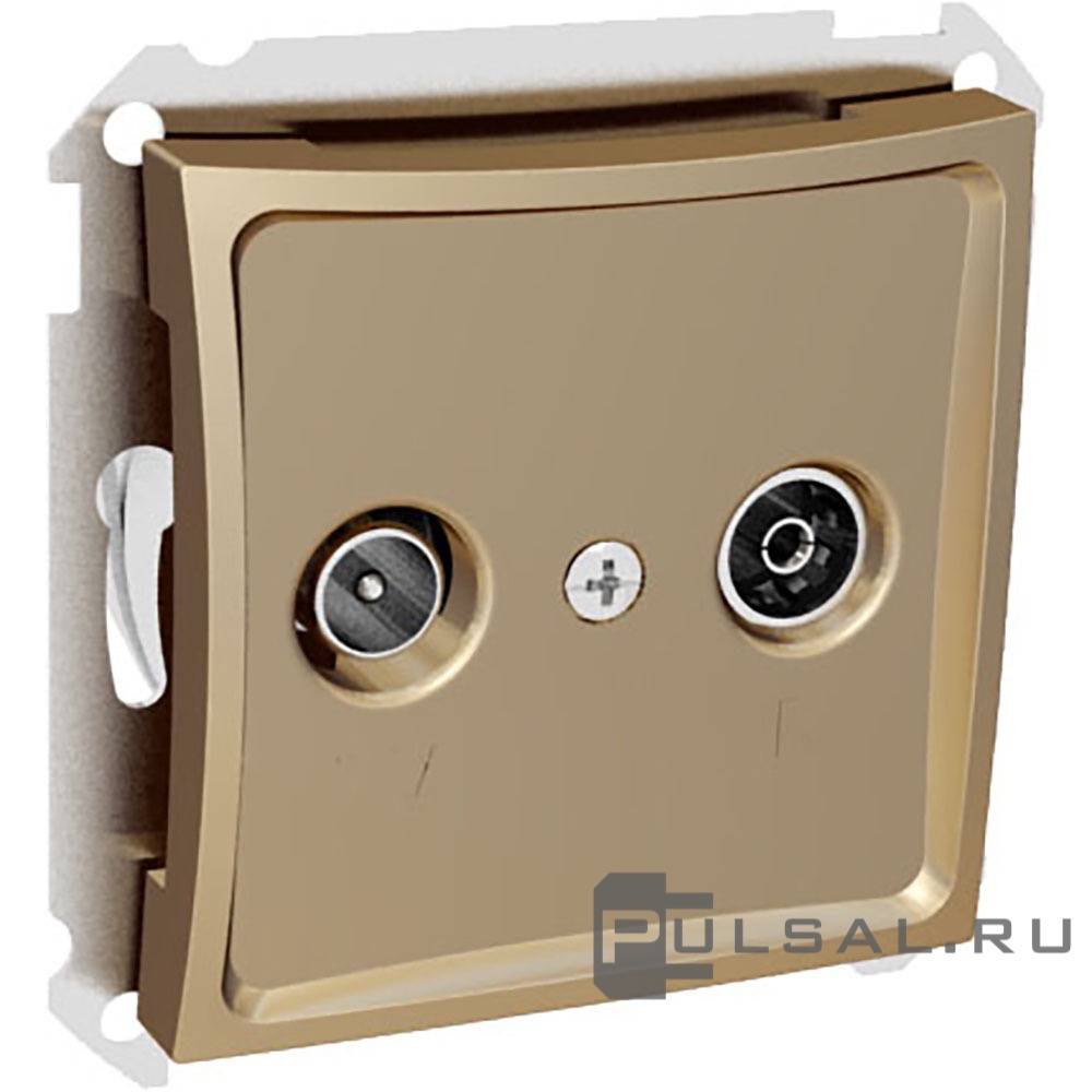 Розетка телефонная RJ11 Дуэт, одинарная, цвет - шампань