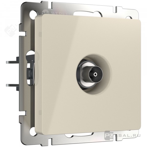 Розетка оконечная Alumax, Split, Slab, Senso, Baguette, Acrylic, Platinum, Elite, Snabb, Stream, Flock, Stark, Fiore, Favorit, Diamant, Aluminium, Antik, Metallic, телевизионная (TV), одинарная, цвет - слоновая кость