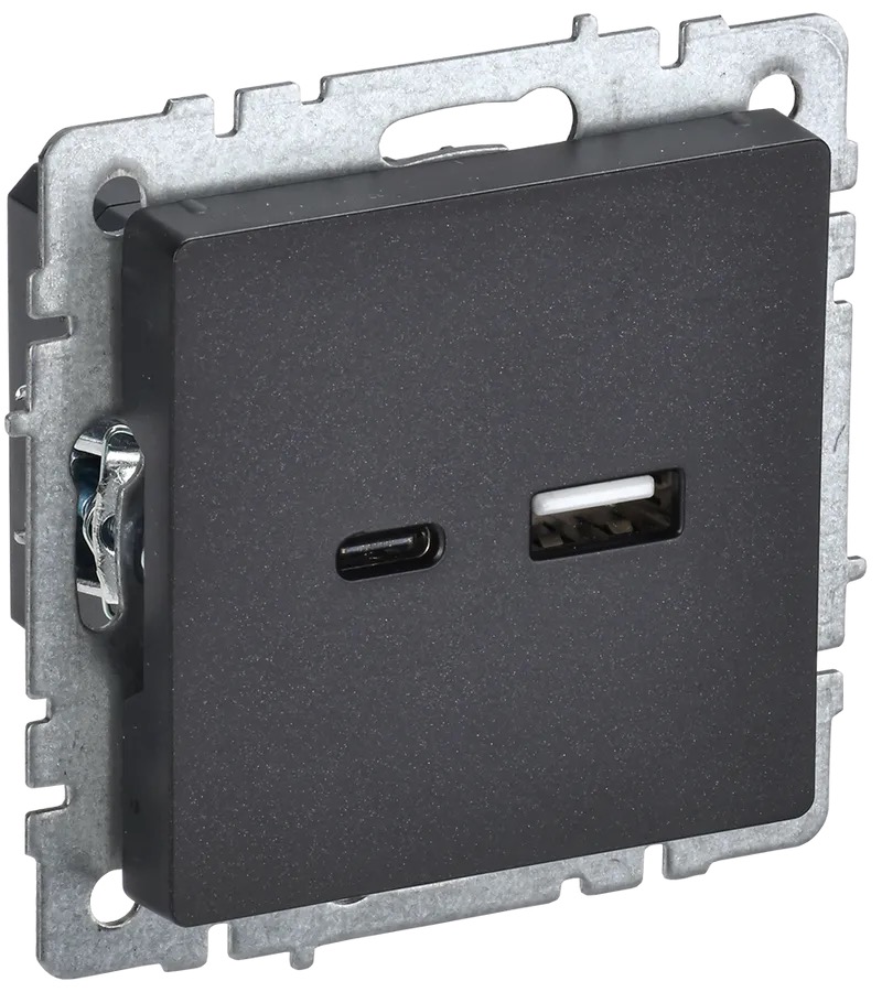 Быстрая зарядка USB А+C, 18 Вт BRITE, USB type-C 5V, USB type-A 5V, двойная, цвет - черный
