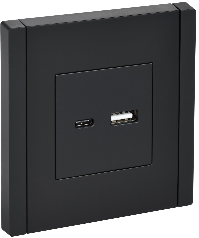 Зарядка USB А+C, 3,1А FORTEPIANO, USB type-C 5V, USB type-A 5V, двойная, цвет - черный