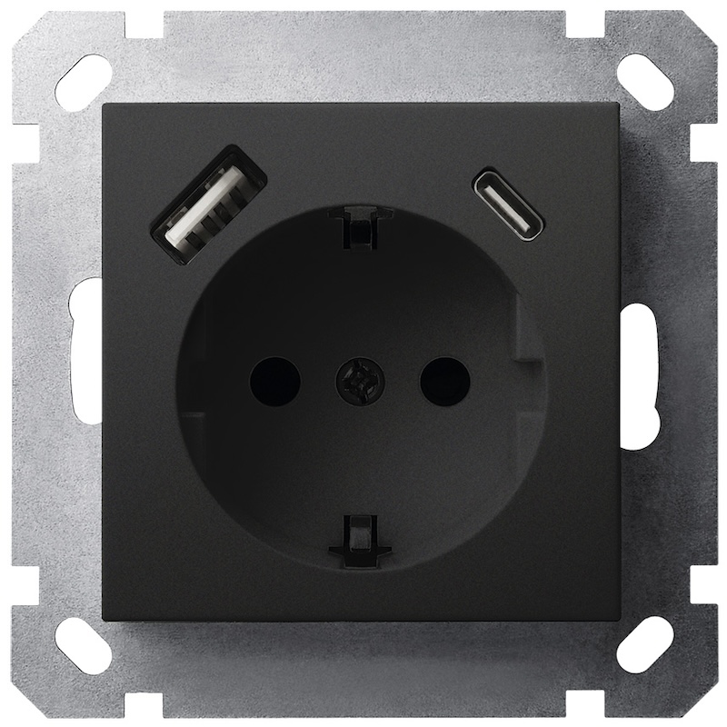 Розетка G series, со шторками, с заземлением, одинарная, цвет - черный матовый