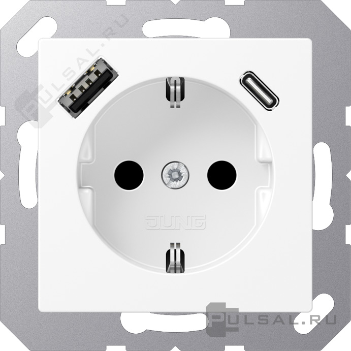 Розетка USB A+C с электрической розеткой A VIVA, A creation, A 550, A flow, USB type-C 5V, USB type-A 5V, Электр. с USB, двойная, цвет - белый матовый