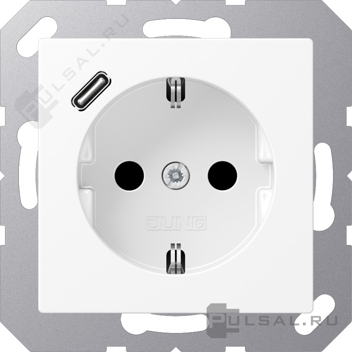 Розетка USB C с электрической розеткой A VIVA, A creation, A 550, A flow, USB type-C 5V, Электр. с USB, одинарная, цвет - белый матовый