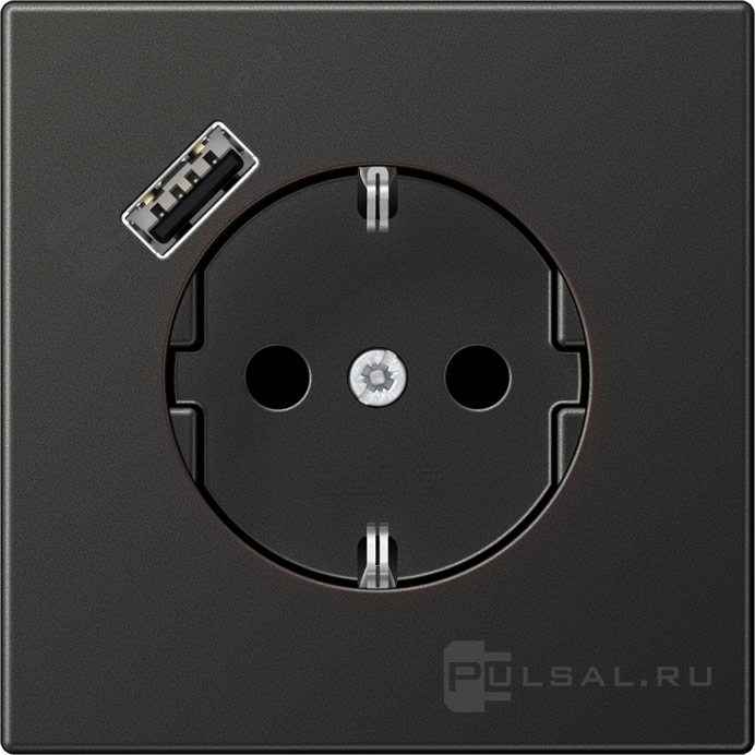Розетка USB A с электрической розеткой LS 990, LS-design, FD-design, USB type-A 5V, Электр. с USB, одинарная, цвет - антрацит