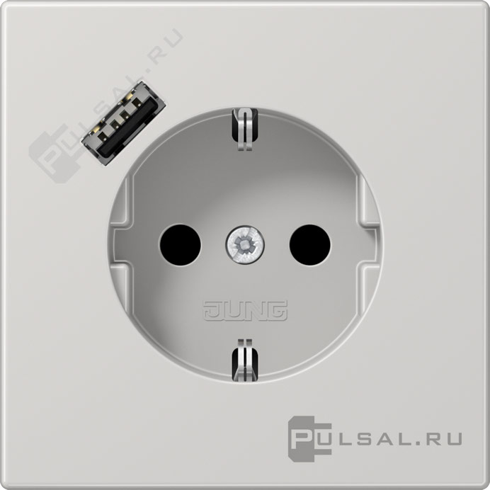Розетка USB A с электрической розеткой LS 990, LS-design, FD-design, USB type-A 5V, Электр. с USB, одинарная, цвет - светло-серый