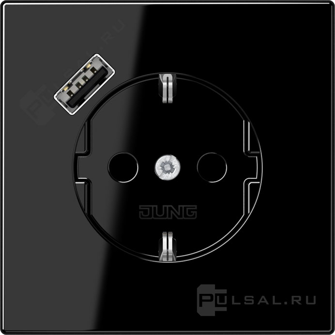 Розетка USB A с электрической розеткой LS 990, LS plus, LS-design, FD-design, USB type-A 5V, Электр. с USB, одинарная, цвет - черный