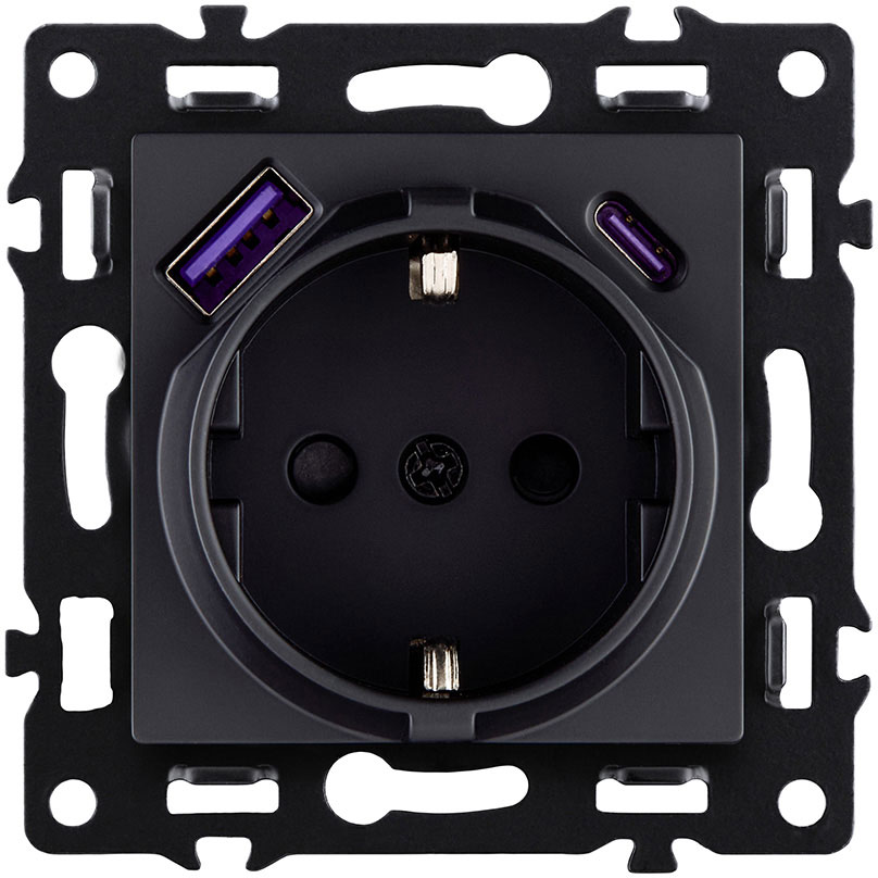 Розетка USB A+C 2.4А с электрической розеткой Asthetik, USB type-C 5V, USB type-A 5V, двойная