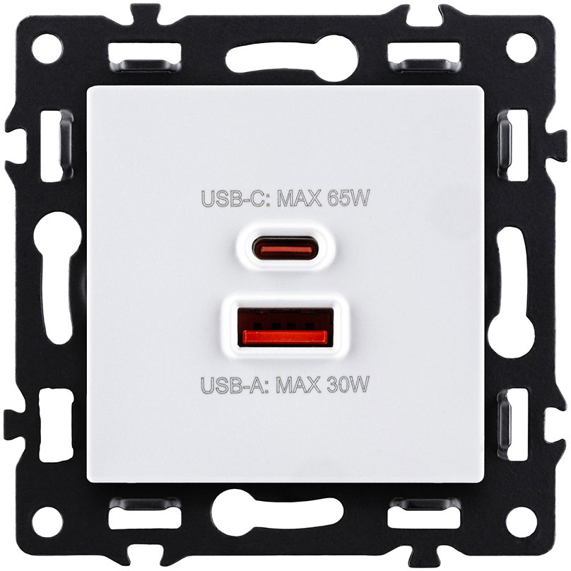 Розетка USB type-C + type-A, 3.0А 65Вт Asthetik, USB type-C 5V, USB type-A 5V, двойная, цвет - белый
