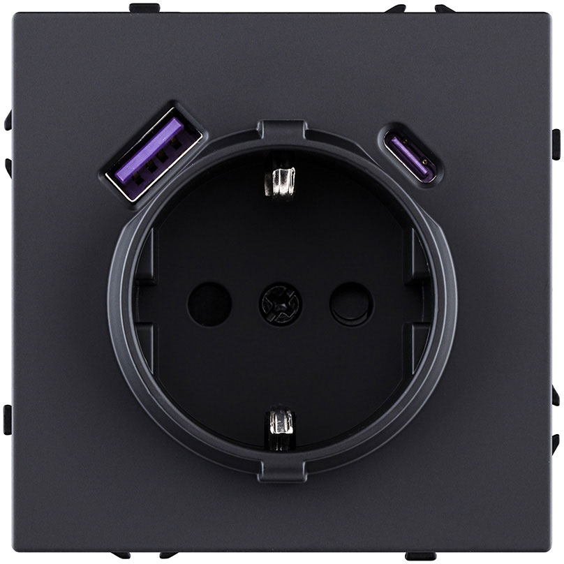 Розетка USB type-C + type-A, 3.0А 65Вт Eclipse, USB type-C 5V, USB type-A 5V, двойная, цвет - Чёрный матовый
