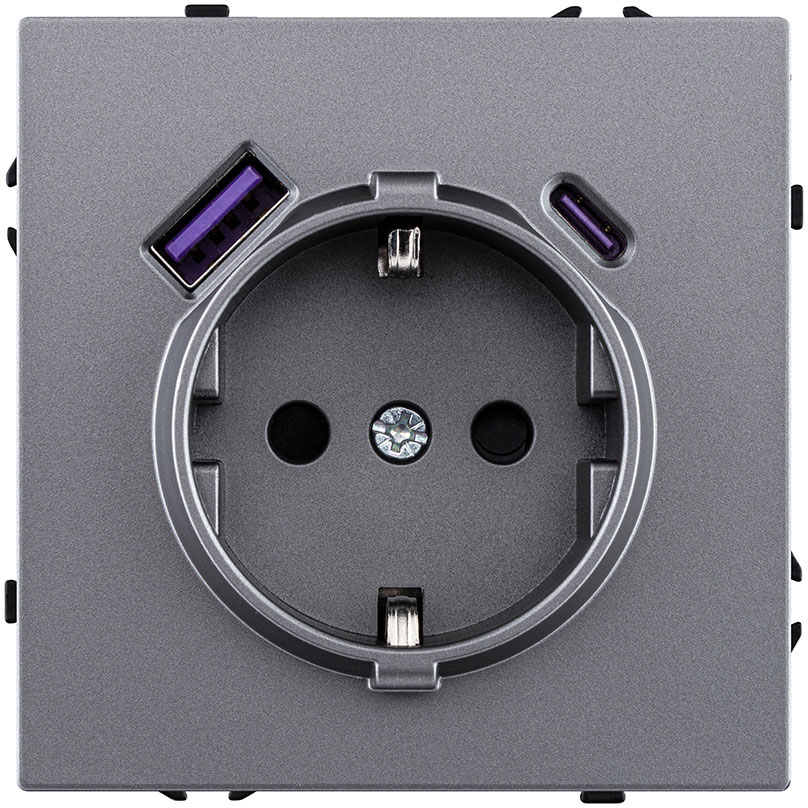 Розетка USB A+C 2.4А с электрической розеткой Eclipse, USB type-C 5V, USB type-A 5V, двойная, цвет - серый