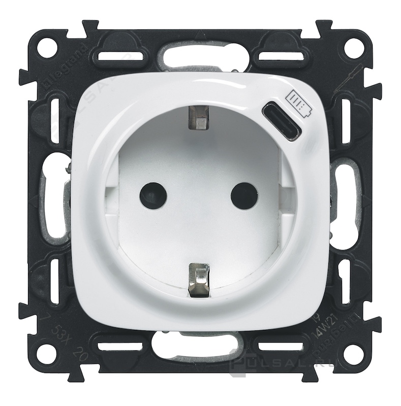Розетка USB type-C, 3.0А Valena Allure, USB type-C 5V, двойная, цвет - белый