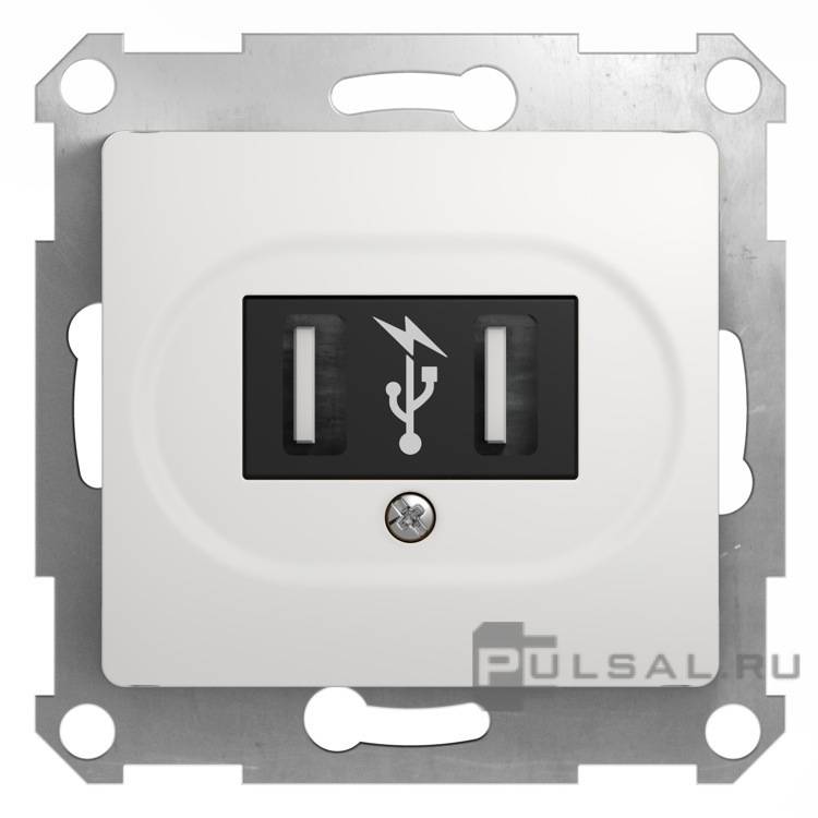 Розетка USB type-A, 2.1А Glossa, USB type-A 5V, двойная, цвет - белый