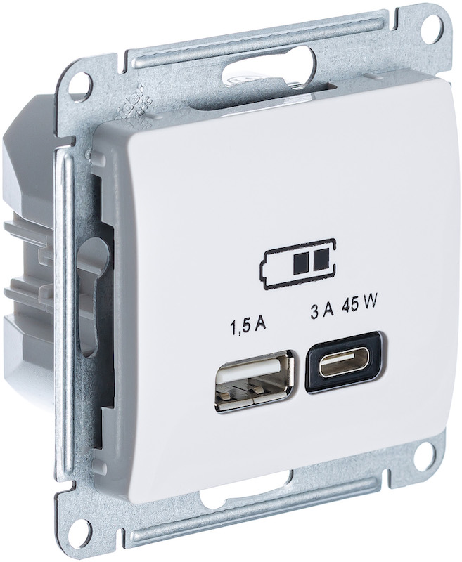 Розетка USB type-C + type-A, 2.4А Glossa, USB type-C 5V, USB type-A 5V, двойная, цвет - бежевый