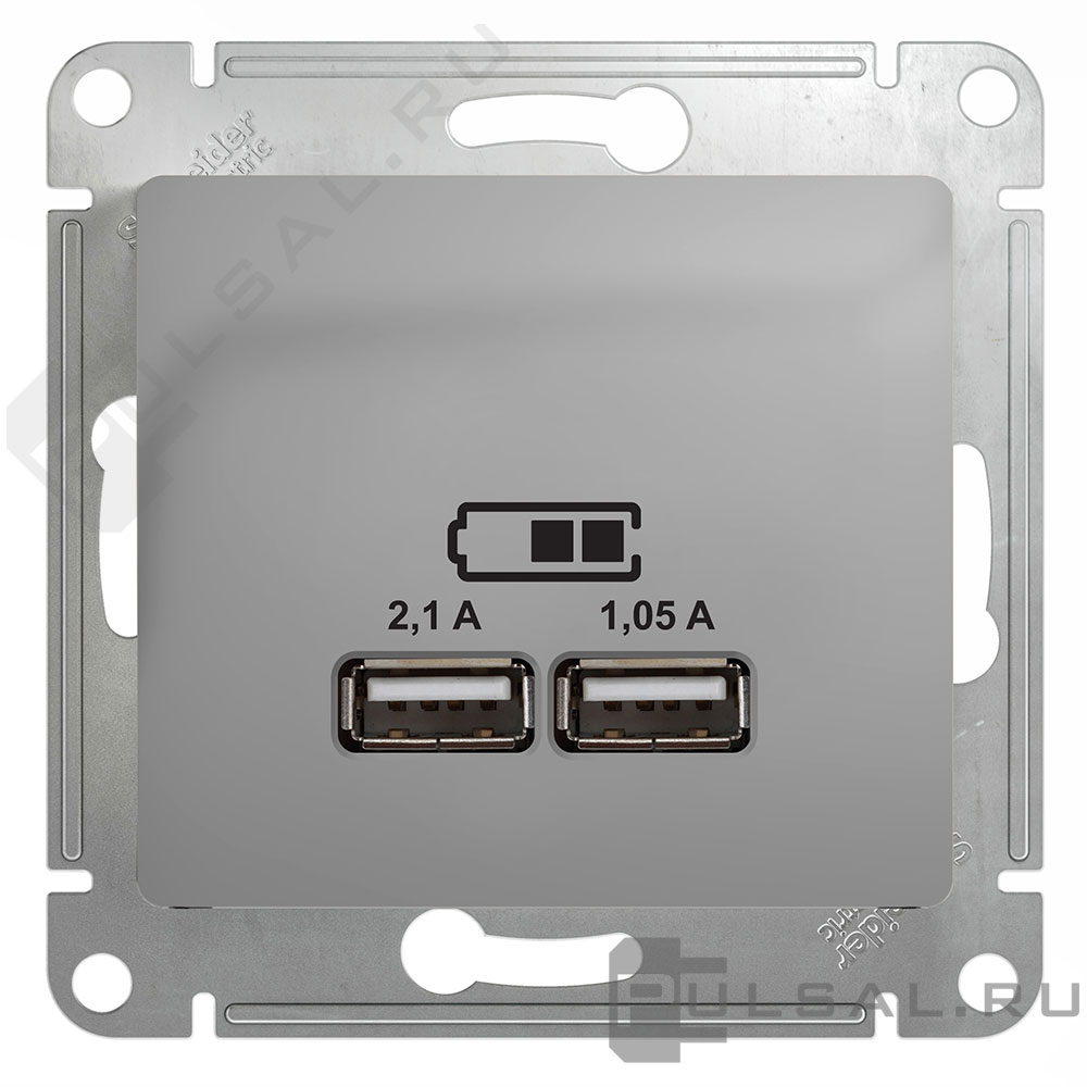 Розетка оконечная Glossa, телевизионная (TV), спутниковая (SAT), двойная, цвет - алюминий