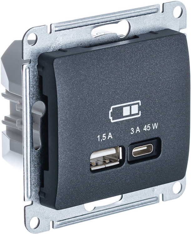 Glossa, поворотно-нажимной, лампы накаливания и галогенные 220В (R), лампы с индукционным (обмоточным) трансформ.(L), лампы с электронным (емкостным) трансформ.(C), диммируемые лампы LED 220В (LEDi тип L), диммируемые лампы LED 220В (LEDi тип C), цвет - антрацит