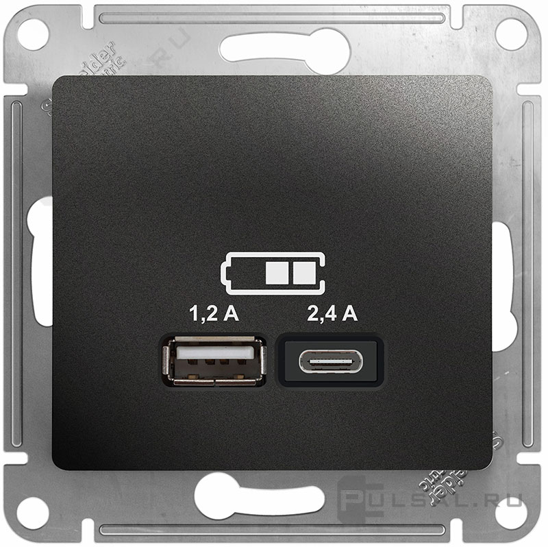 Розетка компьютерная RJ45 Cat.5e (UTP) Glossa, одинарная, цвет - антрацит