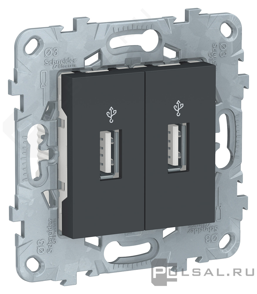Розетка 2хUSB для данных Unica New Pure, Unica New Studio, USB данные, двойная, цвет - антрацит