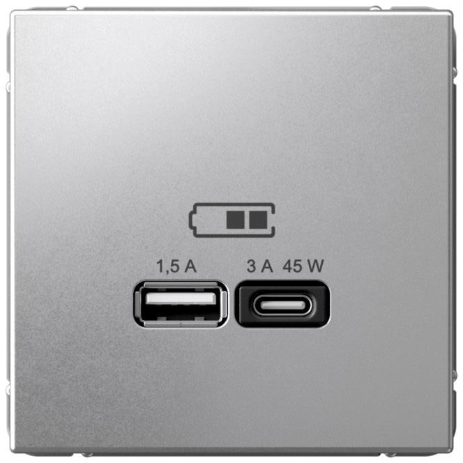 ArtGallery, ArtGallery Pure, USB type-C 5V, USB type-A 5V, Электр. с USB, двойная, цвет - алюминий