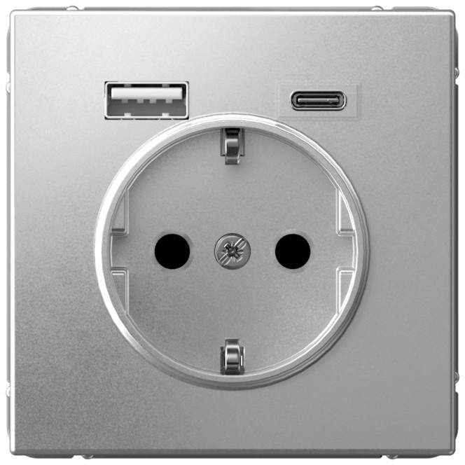 Розетка USB type-A+C, 3.0А с электрической розеткой ArtGallery, ArtGallery Pure, USB type-C 5V, USB type-A 5V, Электр. с USB, двойная, цвет - алюминий