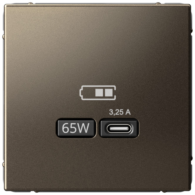Розетка USB type-C 65 Вт с быстрой зарядкой ArtGallery, ArtGallery Pure, USB type-C 5V, двойная, цвет - мокко