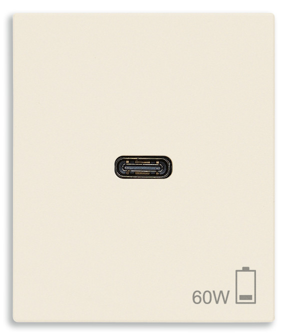 Зарядка USB type-C, 3А, 60 Вт с быстрой зарядкой Linea, USB type-C 5V, одинарная, цвет - бежевый матовый Canvas