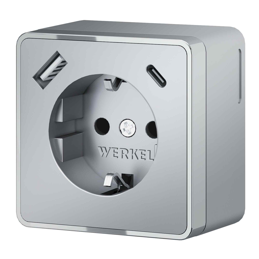 Gallant, без шторок, с заземлением, одинарная, винтовые клеммы, цвет - серебряный